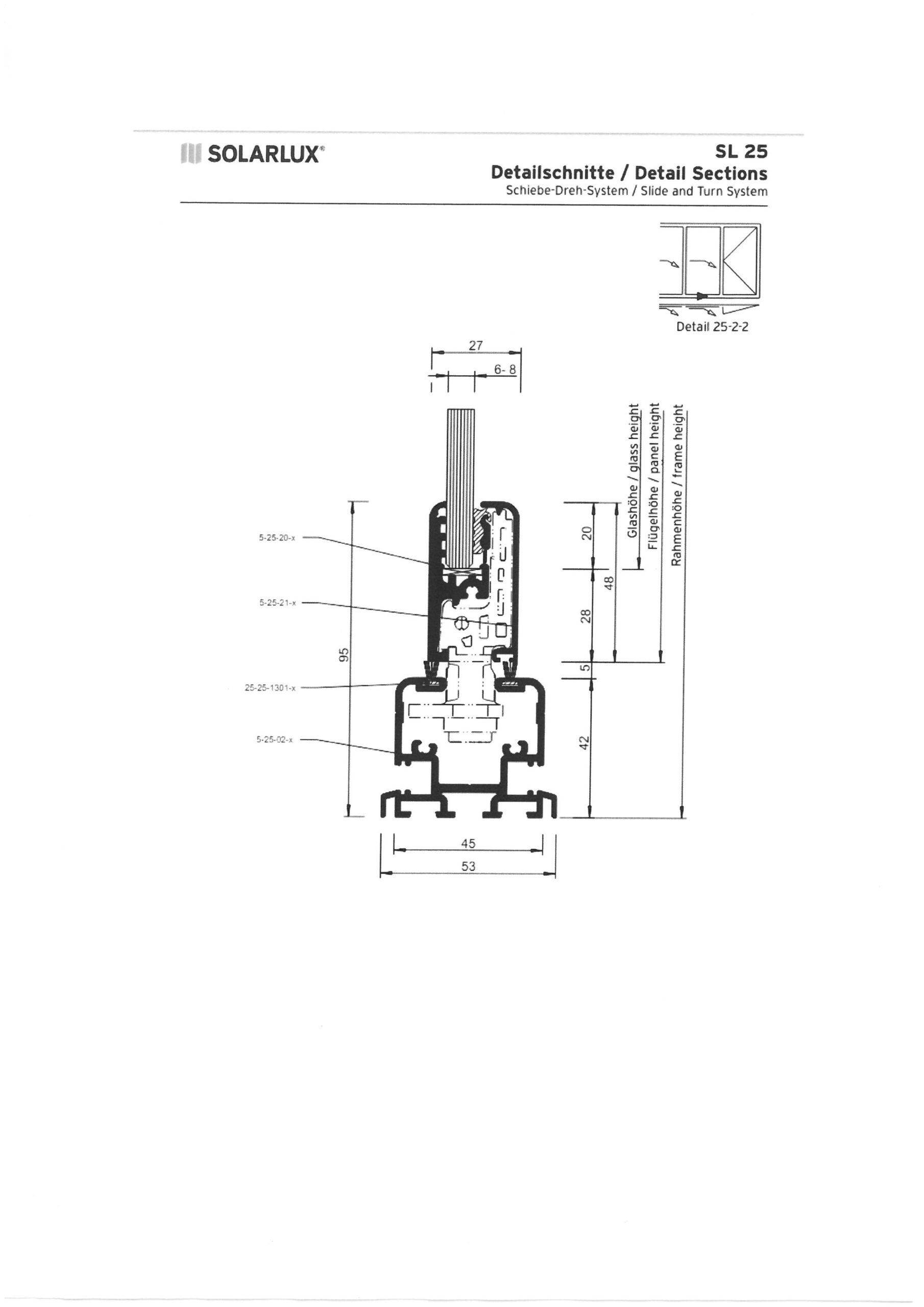 SL 25a/b Verriegelungsset bei aufgesetzter Bodenschiene 5-25-02-x innen- und außenöffnend